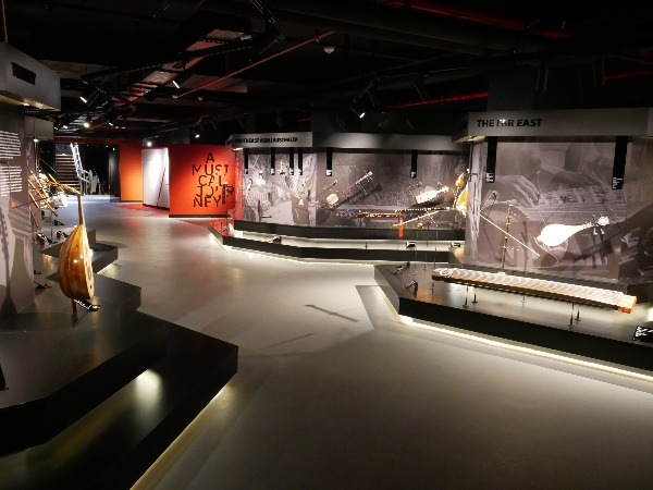 The musical instruments collected by Dr. Hüseyin Parkan Sanlıkol as part of his personal journey intersected with Nilüfer Municipality’s efforts toward protecting and transmitting cultural legacies which resulted in the idea of a museum as well as a dream come true. The museum, which introduces the visitors to various instruments from around the world throughout an intercontinental journey, categorizes the instruments according to how they are spread over the world as opposed to countries or people. While the museum presents a musical geography composed of 13 islands, due to its multi-dimensional nature along with the variety of instruments present in the collection, a rightful exception is being made by placing Turkey in the center. The variety of shades created by the reflections of lights help enrich the interaction with the instruments at the museum where all of the islands have also been designed as concert stages. The short explanations given for the culturally significant instruments present unique treasures of each region instead of the already-existing clichés and exotic impressions. By informing the visitors about the existing musical instruments and traditions in the world, the conceptual framework of the museum makes it possible to both provide an image of the rich cultural legacy of all humanity and enable a deeper relationship with music. At the same time, the museum’s structure includes an interactive platform which presents audio and traditional performance practice samples to the viewers. The principal function of the museum is reflected through a multi-functional, active and viewer experience focused internal flow of events such as temporary exhibits planned in relationship with different disciplines, recitals, and workshops. Nilüfer Municipality Dr. Hüseyin Parkan Sanlıkol Musical Instruments Museum, which also acts as an intercultural platform, presents a new chapter in the field of museology in our city by way of its contemporary exhibition mentality, dynamic and pluralist environment.